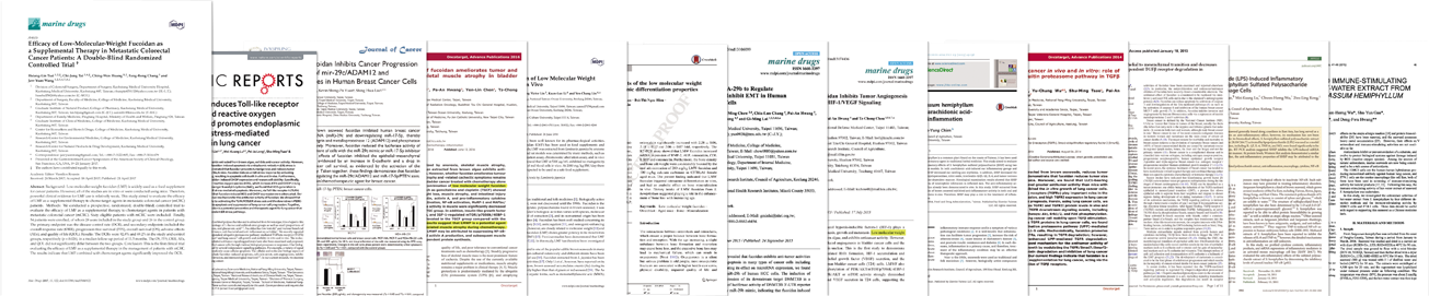 台灣小分子褐藻醣膠經過多家專業機構進行實際科學驗證效果非常顯著,並發表於世界國際期刊高達60篇以上